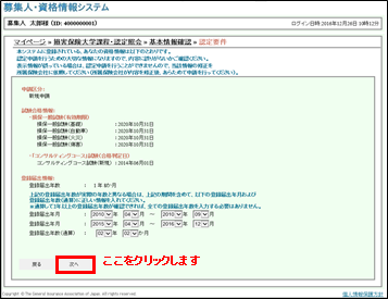 6.資格情報が表示されますので、誤りがないことを確認し、【次へ】をクリックします。